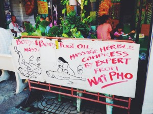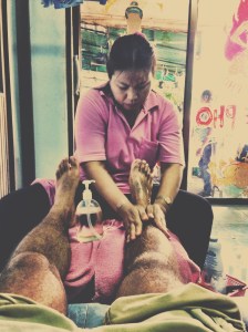 Terden uzerimize yapismis t-shirt artik agir geliyordu. Adim atmakta bile zorlanirken karsimiza Wat Pho’dan sertifikali oldugunu iddaa eden bir masaj salonu cikti. Hemen attik kendimizi iceriye. Ohh nasil serin. 1 saatlik ayak masaji yaptirdik Yasemin’le beraber.
