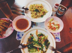 Havaalanindan hemen atladik metroya. U-Baan Guesthouse kisi basi 14$’dan geceyi gecirecegimiz, temiz bir yerdi. Sirt cantalarimizi biraktiktan sonra disari ciktik hemen. Silom taraflarinda, daha once gitmis oldugum Biang Chan diye bir Tayland restoranti vardi. Biralarla beraber cok guzel bir aksam yemegi icin 50$ gibi bir rakam odedik. Yasemin oha dedi, bu parayla bir hafta yasayan backpackerlar varmis. Konu yemek yemek olunca yine bogazimi tutamamistim iste.