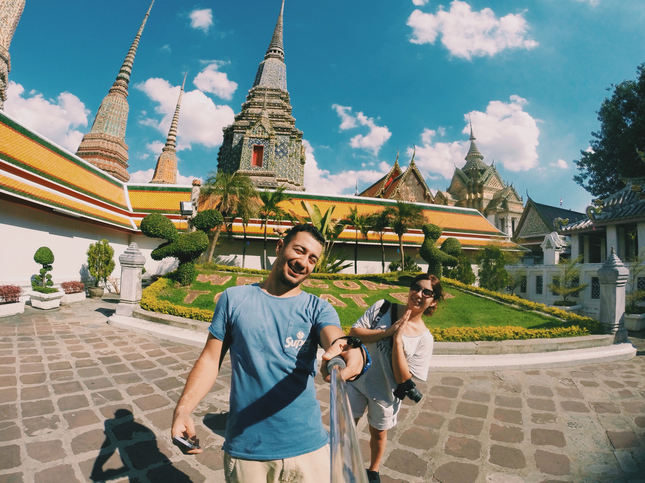 Wat Pho Tayland’in en buyuk ve en eski tapinaklarindan biri ve ayni zamandan meshur Tayland masajinin dogdugu yer olarak geciyor. 1781 yilinda tamamlanan bu yapit 15 metre yuksekliginde ve 43 metre boyundaymis. Sagina soluna da 108 tane kase koymuslar, millet icine para atiyor. Neymis efenim, sans getirirmis, talihin acilirmis. Ben atmadim, Yas atti.