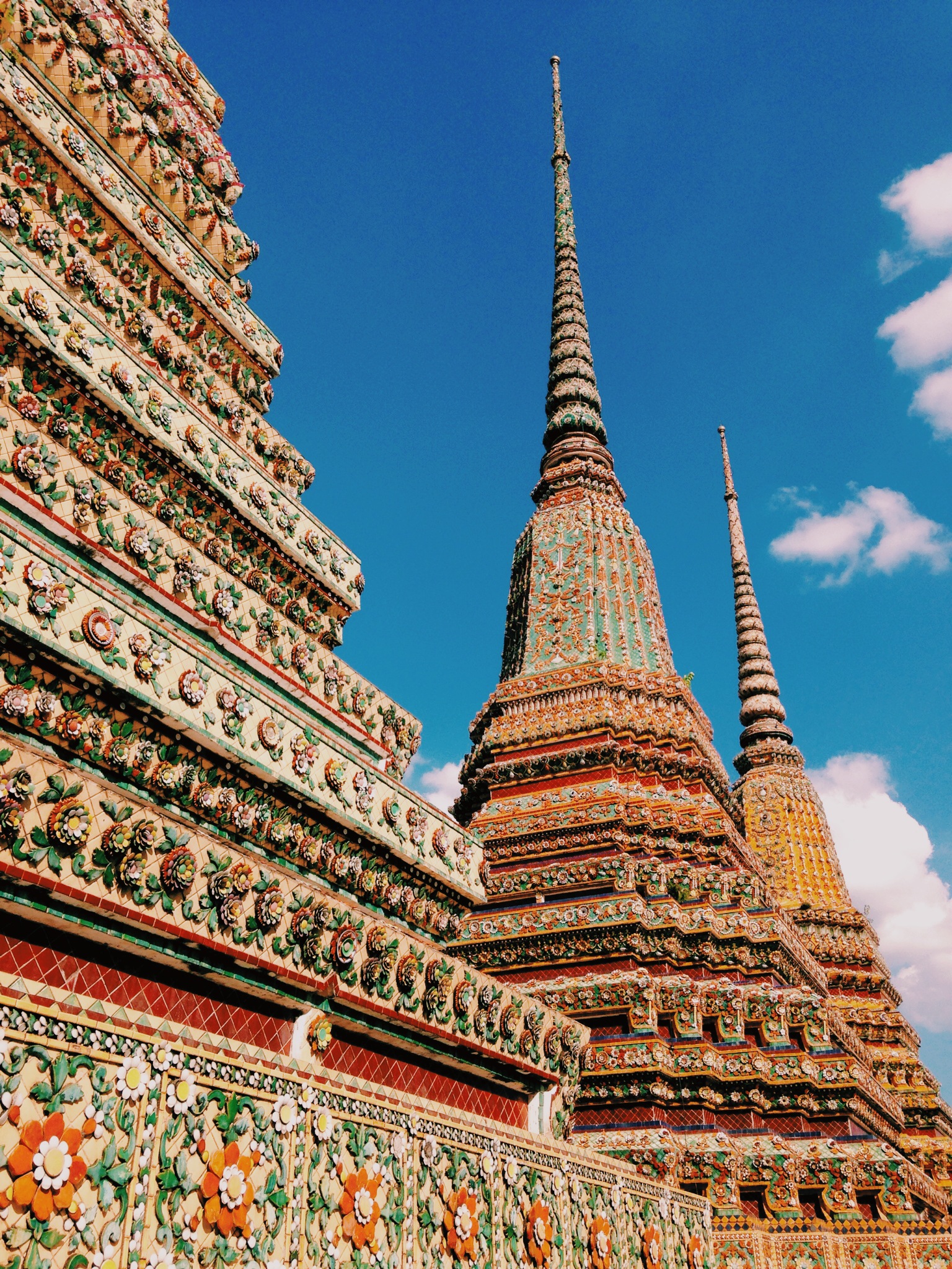 Etrafi biraz turlayip dua eden minik bebenin ve madem buda yatiyor bende uyurum diyen amcanin, baraja girmis futbolcu gibi poz veren budistin ve Wat Pho’nun rengarenk catisinin fotograflarini cektik.